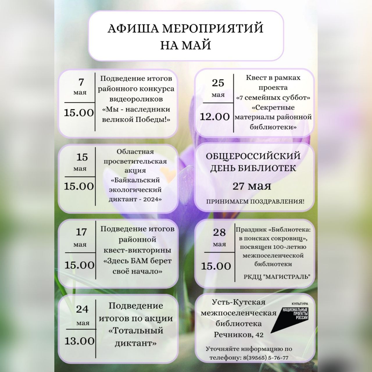 Мероприятия мая в Усть-Кутской межпоселенческой библиотеке